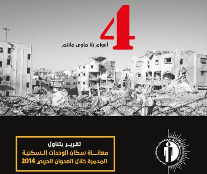 وقد أصدر المركز الفلسطيني لحقوق الإنسان اليوم تقريراً جديداً بعنوان "أربعة أعوام بلا مأوى ملائم"، يتناول المأساة الإنسانية لتلك العائلات، ويعرض لمستوى التقدم في عملية اعمار المساكن المدمرة، والتي تسير بوتيرة بطيئة، حيث ما تزال آلاف الوحدات السكنية المدمرة على حالها، ولم يتم الشروع في إعادة اعمارها، كذلك ما يزال العمل جارٍ في اعمار آلاف الوحدات السكنية، رغم مرور أكثر من 4 أعوام على انتهاء العدوان.
