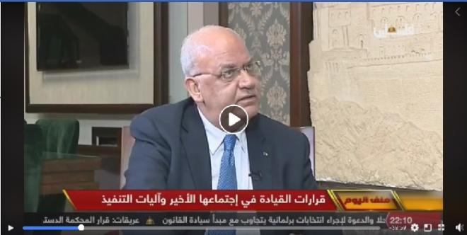 وقال أمين سر اللجنة التنفيذية لمنظمة التحرير الفلسطينية، "المشروع الوطني  يعني إعادة إسم فلسطين إلى خارطة الجغرافيا بعاصمتها القدس الشرقية، وهناك مشروع حزبي ، نحن نواجه خطر كبير، منظمة التحرير غير شرعية والتشريعي تتباكي عليه حماس ، بعد أن سمته بنتائج اسلو الخيانية وكانت حماس تكفر من يدخل فيه عام 1996.."