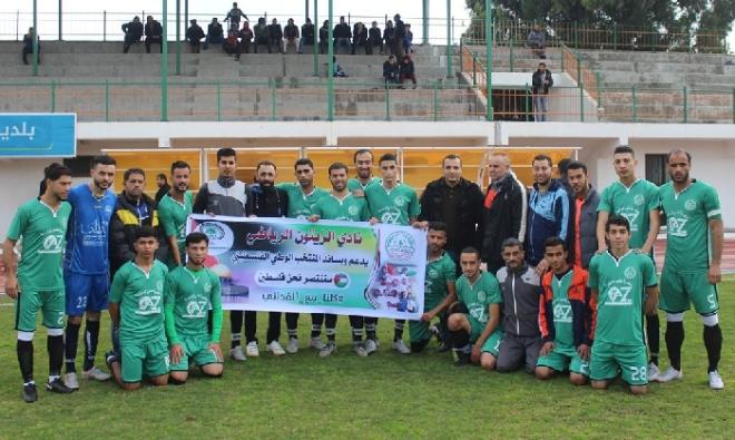 ورفع فريق الزيتون قبل انطلاق مباراته أمام فريق نادي التفاح, لافته حملت صورة للمنتخب الوطني وشعارات تدعم وتساند وتؤازر المنتخب في مهمته الوطنية المقبلة بكأس أمم أسيا 2019 بالإمارات, وخاصة شعار المنتخب الذي تم اعتماده من اللجنة المنظمة بعنوان #سننتصر_نحن_فلسطين .