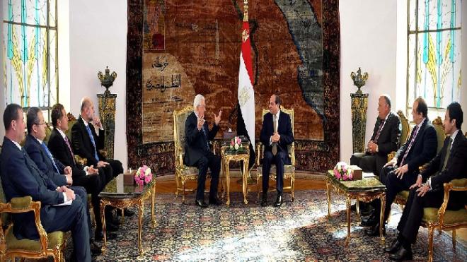 جاء ذلك خلال إستقبال السيسي في قصر الاتحادية بالعاصمة القاهرة، اليوم السبت، الرئيس الفلسطيني محمود عباس (أبومازن)، وذلك بحضور وزير خارجية مصر سامح شكري، ورئيس جهاز المخابرات المصرية عباس كامل، والناطق باسم الرئاسة المصرية بسام راضي ، ومن الجانب الفلسطيني قاضي قضاة فلسطين، مستشار الرئيس للشؤون الدينية محمود الهباش، ومستشار الرئيس الدبلوماسي مجدي الخالدي، وياسر عباس، وسفير دولة فلسطين لدى مصر دياب اللوح