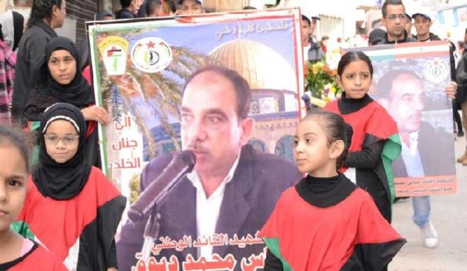 وألقى بلال قاسم أمين سر المكتب السياسي للجبهة كلمة ذكر فيها مناقب ودور الشهيد في الساحة الفلسطينية واللبنانية والعربية مقدما الشكر المشاركين والتعازي لعائلة الشهيد. بعد ذلك تقبلت الجبهة والعائلة التعازي من المشاركين في موكب التشييع وتم وضع أكاليل من الزهور على ضريح الشهيد القائد.