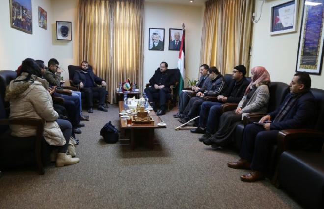 جاء ذلك خلال لقائه اليوم الخميس، وفداً من الاتحاد الفلسطيني العام لذوي الإعاقة، إذ تم التباحث في عديد القضايا التي تخص التوظيف، وذلك بحضور الوكيل المساعد للشؤون الإدارية والمالية والأبنية واللوازم م. فواز مجاهد، ومدير عام العلاقات الدولية والعامة نديم سامي، ومدير شؤون الموظفين مهند أبو شمة، والمدير في الإدارة العامة للعلاقات الدولية والعامة رائد خليفة.