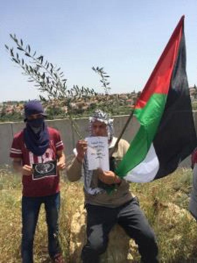 وكانت المسيرة قد انطلقت عقب صلاة الجمعة بعنوان "على العهد سائرون"، ورفع المشاركون فيها العلم الفلسطيني وصورة الشهيد ربيع الخندقجي، والراحل محمد حسن ابو شمعة، وتم غرس شجرة زيتون تخليدا لروحيهما بالقرب من الجدار العنصري.