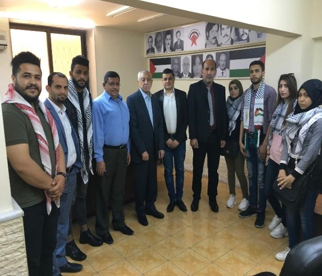 حواتمة، من جانبه، استعرض أمام الوفد دور الشباب الفلسطيني، على مدى تاريخ الحركة الوطنية الفلسطينية، منذ إعادة تأسيسها في منتصف ستينات القرن الماضي، وفي إطلاق الثورة الفلسطينية المعاصرة، ببرامجها النضالية التي تطورت على يد القيادة الشابة للجبهة الديمقراطية، في سياسة واقعية ثورية، أبدعت البرنامج الوطني المرحلي، برنامج العودة وتقرير المصير ودولة الإستقلال وعاصمتها القدس الشرقية المحتلة على حدود عام 67.