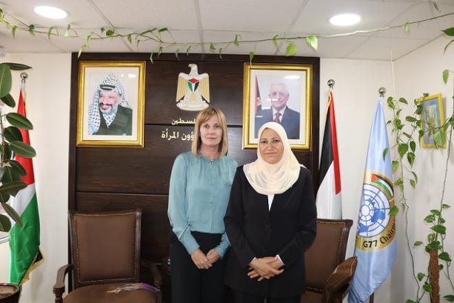 بحثت الدكتورة أمال حمد وزيرة شؤون المرأة، اليوم الخميس، في مقر الوزارة، مع هيلدا هارالدستاد ممثلة النرويج في مكتب رام الله والوفد المرافق، توطيد العلاقات وتعزيز آليات التعاون المستقبلي، بحضور بسام الخطيب وكيل الوزارة وكادر من الوزارة.