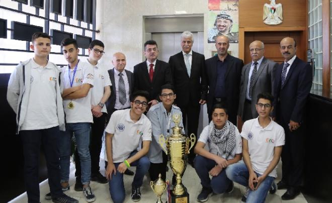 كرّم وزير التربية والتعليم الفلسطيني مروان عورتاني، بمكتبه، اليوم، المدرسة الثانوية الإسلامية بمديرية نابلس؛ لحصولها على المرتبة الأولى على مستوى العالم في مسابقة أولمبياد اللغة الإنجليزية التي عُقدت في الأردن؛ إذ شارك في المسابقة 49 فرقة من دول عربية وأجنبية.