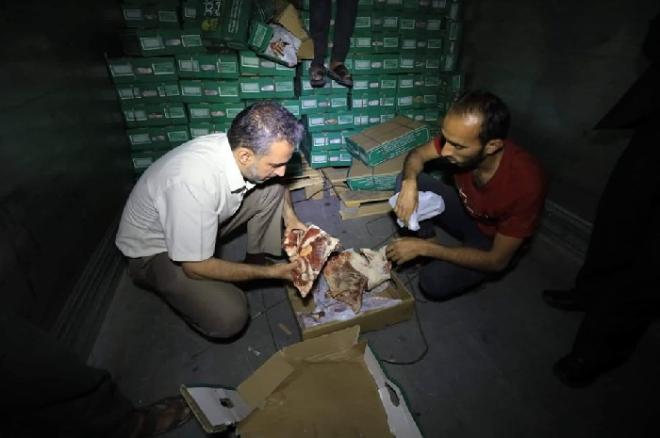 وأضافت في البيان "توجهت اللجنة برفقة مندوبي وزارة الاوقاف مساء يوم الخميس الماضي الى الثلاجات الموجودة بها اللحوم حيث تابعت عملية افراغ الشحنة من السيارات الى الثلاجات وقامت بالفحص الظاهري لعدد لا بأس به من هذه الكراتين وتبين أن جميع الخواص الحسية سليمة واستمر الأمر لعدة ساعات انتهى بسحب عينات الى مختبر الصحة العامة لاستكمال باقي الفحوصات الميكروبيولوجية والكيميائية، حيث تم تم فتح مختبر الصحة العامة بشكل استثنائي بعد منتصف ليلة الجمعة ويومي الاجازة الجمعة والسبت كي يتسنى فحص اللحوم بأسرع وقت ممكن.."