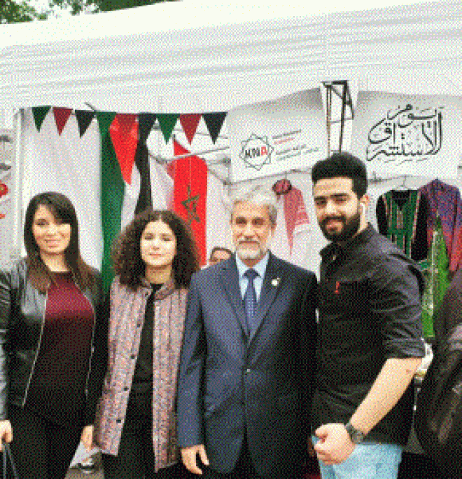وقال سفير دولة فلسطين محمود خليفة: إن رعاية السفارة لهذا اليوم ترتكز على رؤيتنا في الحضور الدائم في كافة الأنشطة والفعاليات لتوضيح حقيقة المعاناة التي يعيشها شعبنا، ونحن نستذكر هذه الايام الذكرى الواحدة والسبعين للنكبة، وتأتي مشاركتنا للتأكيد أن الشعب الفلسطيني قادر على محاكاة كافة الشعوب مرتكزاً على ارث انساني من الثقافة والمعرفة والانفتاح على العالم.