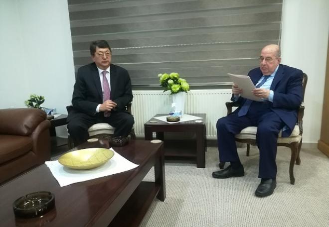 استقبل سليم الزعنون رئيس المجلس الوطني الفلسطيني في مكتبه في العاصمة الأردنية عمان صباح اليوم، عضمات بيرديباي السفير غير المقيم لجمهورية كازاخستان لدى دولة فلسطين.