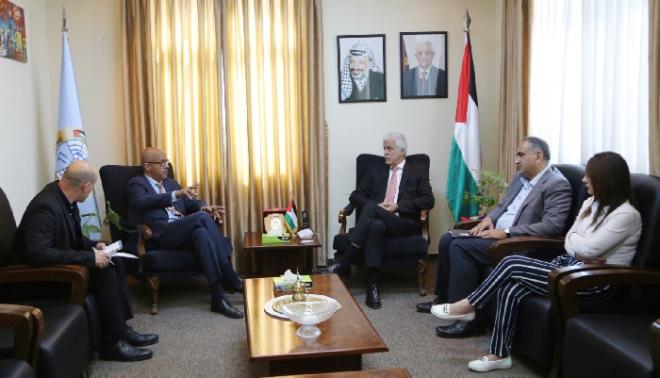 بحث وزير التربية والتعليم د. مروان عورتاني، بمكتبه، اليوم الأربعاء، مع الممثل الخاص لبرنامج الأمم المتحدة الإنمائي في فلسطين روبرت فالينت؛ سبل توسيع مضامين الشراكة والتعاون لخدمة قطاع التعليم الفلسطيني، خاصةً في القدس وقطاع غزة والمناطق المسماة "ج".