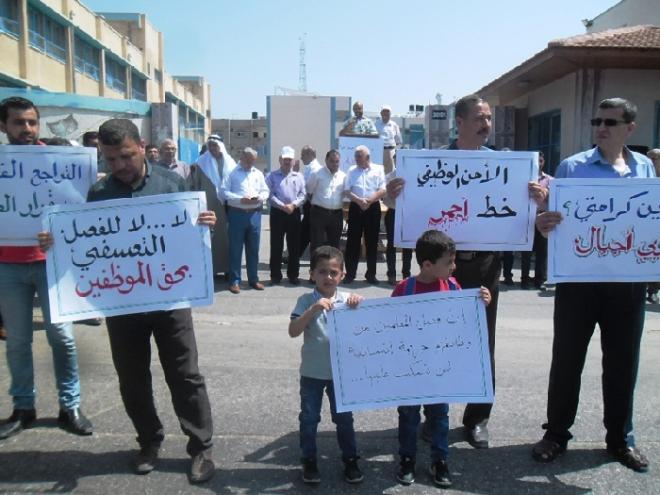 نفذ يوم أمس الخميس قطاع المعلمين التابع لاتحاد الموظفين بوكالة الغوث الدولية وقفة احتجاجية كبرى،رفضا لقرار فصل المعلم (حسام الديراوي) من قبل إدارة وكالة الغوث وذلك أمام مجمع مدارس الوكالة غرب مستشفى ناصر بخان يونس.