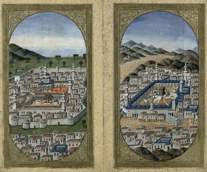 ما ترونه ليس بصورة اعتيادية. هذا عمل فني يدوي يصور مكة المكرمة والمدينة المنورة تحتفظ بها المكتبة الوطنية في #إسرائيل ، تضمنتها مخطوطة عثمانية تعود للعام 1795. pic.twitter.com/ZRoEJL793b