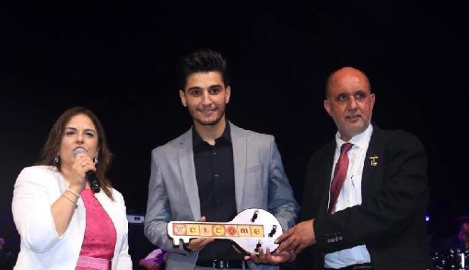 وخلال المهرجان الفني، وبلفتة طيبة تقديرا لما يقدمه الفنان محمد عساف، من فن فلسطيني ملتزم بحمل ونشر رسالة قضية شعبنا العادلة بكلماته وأغانيه الوطنية الجميلة، كرم عضو المجلس الوطني السيد نضال حمدان رئيس تجمع الشتات الفلسطيني في أوروبا، الفنان محمد عساف بلوحه تراثية فلسطينية عبارة عن مجسم مفتاح العودة، تقديرا لهذا الفنان الفلسطيني الصاعد، هذه اللفتة التكريمية التي صدحت معها أصوات الحضور بالهتاف لتقديم التحيات لعموم شعبنا الفلسطيني في الداخل والشتات ، وخصوصاً لأهلنا المرابطون داخل عاصمتنا الأبدية القدس .