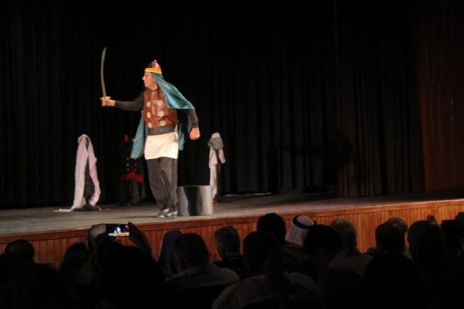 المسرحية من وحي قصيدة للشاعر الفلسطيني زياد كعوش، بطولة الفنان وليد سعد الدين الذي قدّم عرضاً مميزاً على مدى 35 دقيقة جسد خلالها شخصيات عدة، وكان ينتقل من الحكواتي إلى الشخصيات ليمثّل دورها بكل حرفية، لتكون نقلة نوعية في المسرح الفلسطيني.