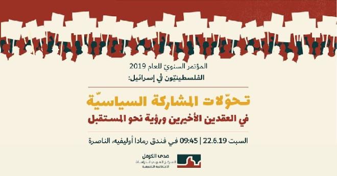 تستمر التحضيرات في مركز مدى الكرمل لمؤتمره السنوي والذي سيتم عقده في مدينة الناصرة يوم السبت 22.6.19 تحت عنوان "الفلسطينيون في اسرائيل - تحوّلات المشاركة السياسية في العقدين الأخيرين ورؤية نحو المستقبل".