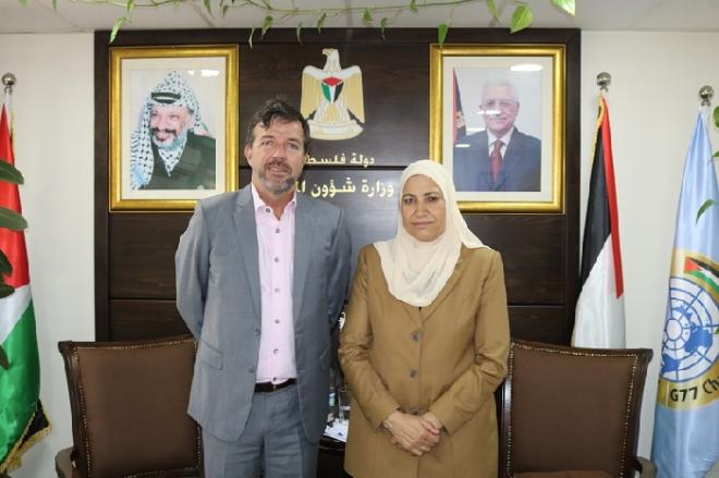 إلتقت د. آمال حمد وزيرة شؤون المرأة الفلسطينية، في مدينة رام الله، اليوم الخميس، مدير مكتب المفوض السامي لحقوق الإنسان جيمس هنين والوفد المرافق، وتناول اللقاء بحث سبل تعزيز التعاون المشترك في قضايا حقوق الإنسان والنوع الإجتماعي، بحضور كادر من الوزارة.