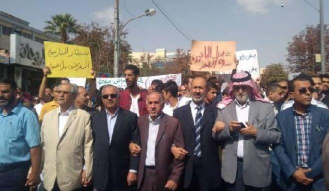 وتأتي المسيرة بعد ساعات قليلة من أخرى مشابهة وسط العاصمة عمان، دعت إليها الحركة الإسلامية.