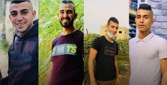 وأكدت وزارة الصحة الفلسطينية ومصادر في مستشفى الشهيد خليل سليمان الحكومي في جنين،استشهاد الشبان: صالح أحمد محمد عمار (19 عاما)، وأمجد إياد حسينية من مخيم جنين، ورائد زياد عبد اللطيف أبو سيف (21 عاما)، ونور الدين عبد الإله جرار، من مدينة جنين.