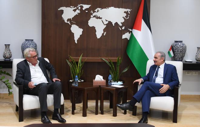 استقبل رئيس الوزراء الفلسطيني محمد اشتية، يوم الخميس في مكتبه برام الله، المنسق الخاص للأمم المتحدة لعملية السلام في الشرق الأوسط تور وينسلاند، حيث بحث معه آخر المستجدات وتطورات الأوضاع السياسية والاقتصادية، بالإضافة الى رفع مستوى تنسيق الجهود فيما يخص العمل الإنساني لمؤسسات الأمم المتحدة في الأراضي الفلسطينية.