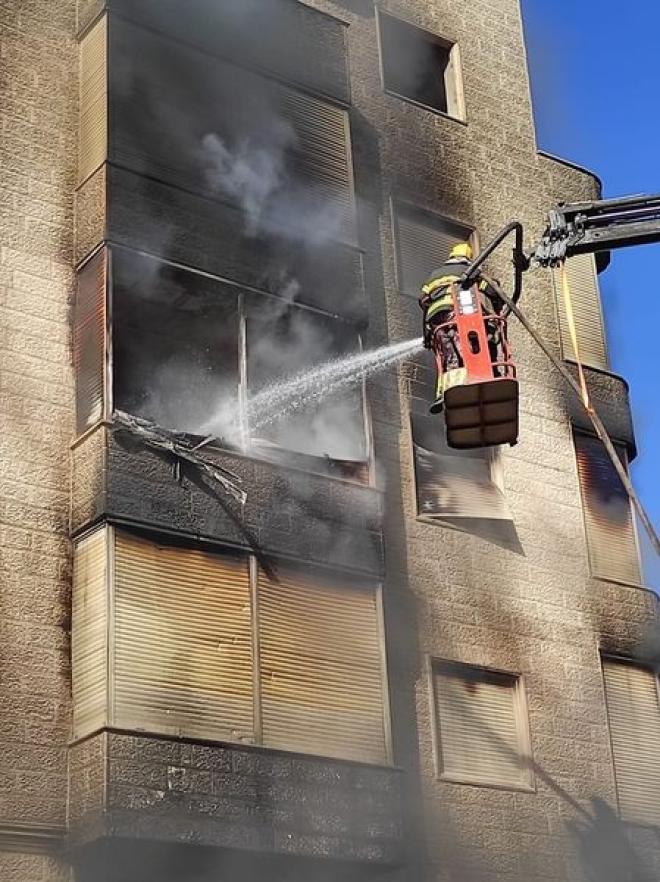 إخماد حريق في عمارة سكنية تستخدم كمستودعات أجهزة كهربائية جنوب الخليل