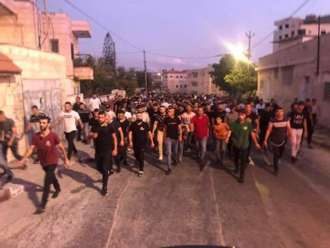 طالب مواطنون مشاركون في مسيرة، الليلة، سلطات الاحتلال الإسرائيلي بتسليم جثمان الشهيد جميل العموري الذي اغتيل في 10/6/2021 وما زال جثمانه الطاهر محتجزا لدى الاحتلال.