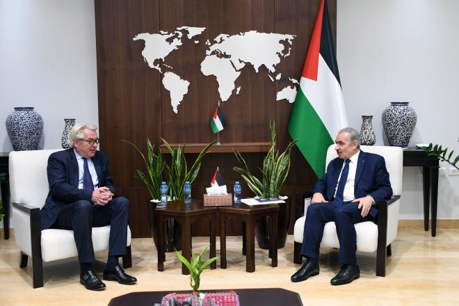 وشدد اشتية على أهمية الدفع باتجاه تسريع عملية اعمار قطاع غزة، وأن تكون السلطة الوطنية هي العنوان الرئيسي في كل شيء يتعلق بالقطاع.