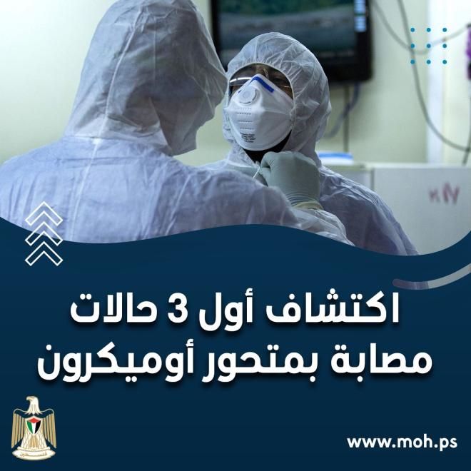 أعلن الناطق باسم وزارة الصحة الفلسطينية د. كمال الشخرة تسجيل أول 3 إصابات بمتحور أوميكرون، لمواطنين من رام الله والخليل وطوباس.