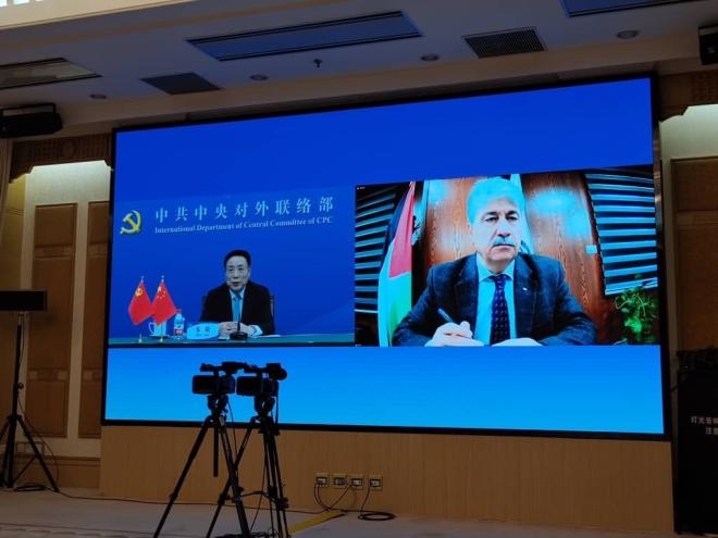 وأضاف مجدلاني خلال لقاء على نظام الزووم مع وزير دائرة العلاقات الخارجية للجنة المركزية للحزب الشيوعي الصيني سونغ تاو ، خلال افتتاحهم للدورة الدراسية الافتراضية ، دورة "البناء وترسيخ علاقات الصداقة " بين الجبهة والحزب من خلال دائرة العلاقات الخارجية يوم الثلاثاء ، والذي يتطرق لتنمية وتطوير العلاقات الثنائية بين الحزبين ومناقشة آفاق المستقبل نحو علاقات قوية وراسخة ، وتستمر اعمالها لمدة يومين بحضور أعضاء المكتب السياسي واللجنة المركزية للجبهة ، ونتقدم بالشكر والتقدير للحزب على استجابتهم لتنظيم هذه الدورة الهامة والتي نعتبرها دورة تأسيسية على أن تتبعها المزيد من الدورات من خلال الزوم وايضا تنظيم دورة متخصصة للكادر في بكين مستقبلاً.