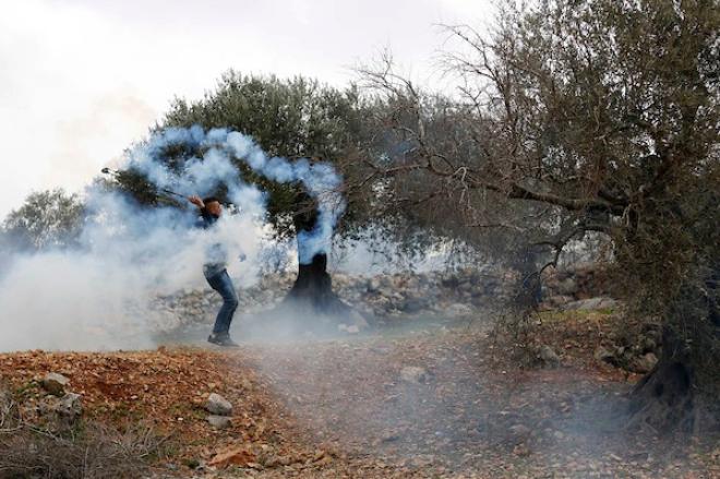 مواجهات بين المتظاهرين الفلسطينيين وقوات الاحتلال الإسرائيلي عقب مسير ضد الاستيطان في بلدة بيتا بنابلس