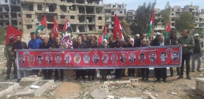 واصلت منظمات الجبهة الديمقراطية لتحرير فلسطين في سوريا إحياءها الذكرى الـ 53 للانطلاقة المجيدة في 22شباط، فقامت وفود منها بزيارة أضرحة الشهداء في مقابر مخيم اليرموك، ووضع أكاليل الزهر على نصب الشهيد المجهول.