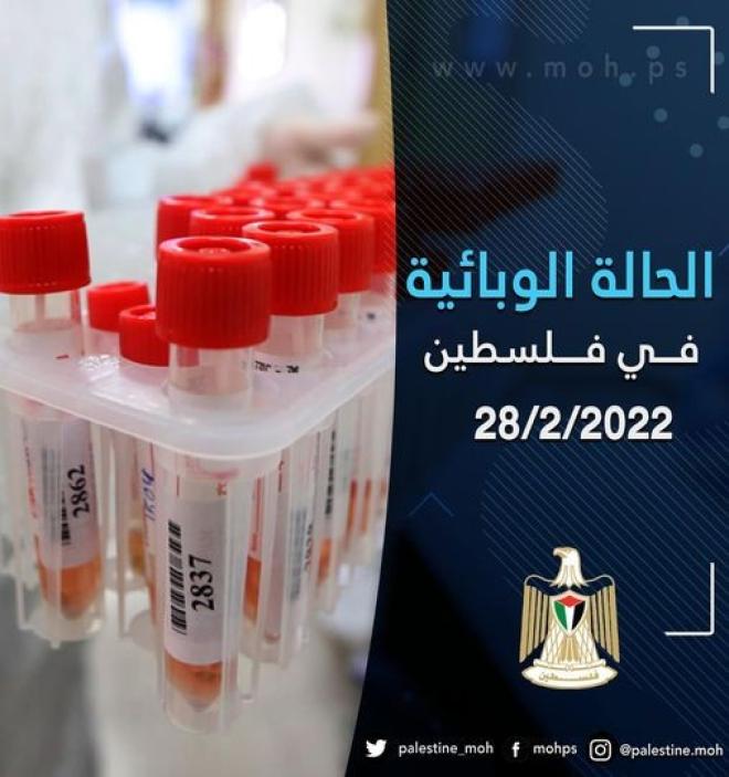 - تسجيل 12 وفاة و1256 إصابة جديدة بفيروس كورونا و2625 حالة تعاف في فلسطين خلال الساعات الـ24 الماضية