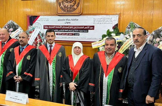 وسلطت الرسالة الضوء على دور الأمم المتحدة في منع استخدام الأسلحة المحرمة دوليًا بأنواعها المختلفة من أسلحة كيميائية (القنابل السامة والقنابل الحارقة) ونووية، الإشعاعية ذات الطبيعة الفيزيائية (الأسلحة الجرثومية) ذات قوة تدميرية كبيرة في المنشآت، رغم وجود أسلحة تقليدية يستخدمها المحاربون في القتال لشل قوة الأعداء قبل إنتاج وتصنيع تلك الأسلحة المحظورة دوليًا.في ضوء أحكام الفقه الإسلامي والقانون الدولي.