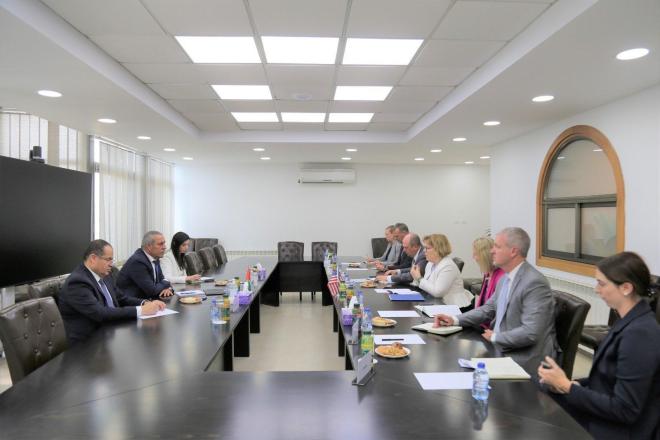 التقى أمين سر اللجنة التنفيذية لمنظمة التحرير الفلسطينية حسين الشيخ، في مكتبه بمدينة رام الله، يوم الثلاثاء، مع الوفد الأميركي برئاسة مساعدة وزير الخارجية باربرا ليف.