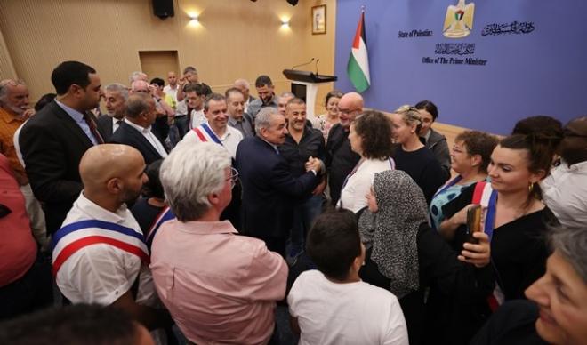 استقبل رئيس الوزراء الفلسطيني د. محمد اشتية، يوم الاثنين في مكتبه برام الله، وفدا من رؤساء بلديات فرنسية وعدد من المتضامنين، حيث أطلعهم على آخر المستجدات والتطورات السياسية بالإضافة إلى انتهاكات الاحتلال بحق أبناء شعبنا.