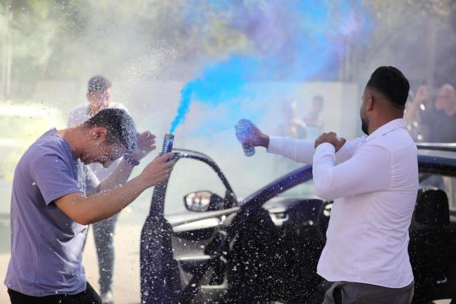 أجواء الاحتفالات بنتائج الثانوية العامة في مدينة الخليل.تصوير - مشهور وحواح
