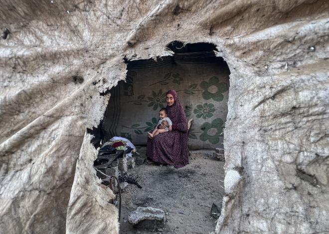 يُكافح النازحون الفلسطينيون لمواجهة ظروف معيشية صعبة مع اقتراب فصل الشتاء، حيث يعيشون في خيام مهترئة لا تحميهم من البرد أو المطر.