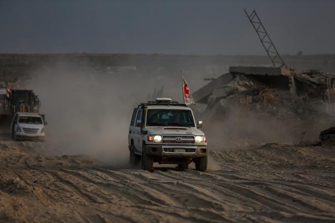 وغادرت سيارات الصليب الأحمر الدولي الليلة نحو إسرائيل بعد تسلمها جثة أسير إسرائيلي جنوب قطاع غزة.
