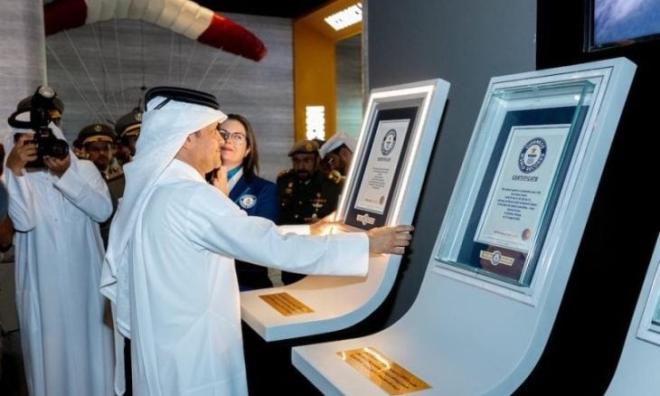 تسلمت قطر شهادة من موسوعة غينيس للأرقام القياسية بعد تسجيلها رقما قياسيا عالميا عبر تنظيم أكبر عرض جوي عسكري للقفز بالمظلات بمشاركة عدد كبير من الفرق الدولية، وفق المعايير المعتمدة عالميا.