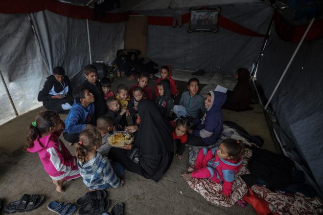 تعيش الأسرة الفلسطينية في خيمة في ظروف صعبة تزداد سوءًا مع اقتراب فصل الشتاء.