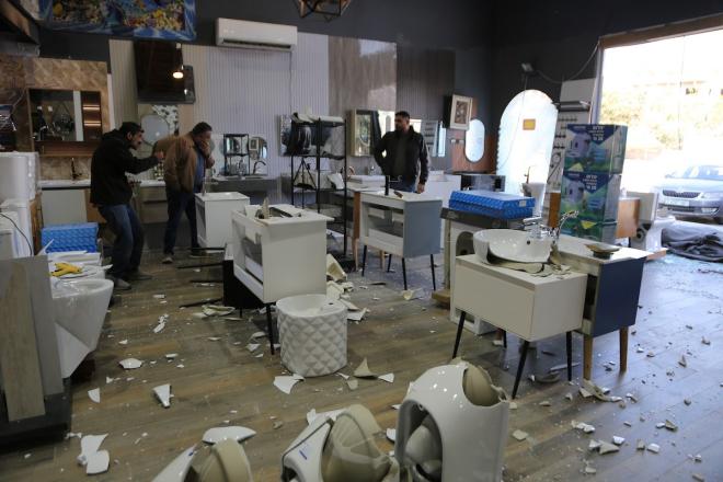 يتفقد الفلسطيني محمد مرقة متجره المتضرر بعد أن هاجمته مجموعة من المستوطنين الإسرائيليين وخربته في قرية دير شرف غرب نابلس في الضفة الغربية، 19 نوفمبر 2025.
