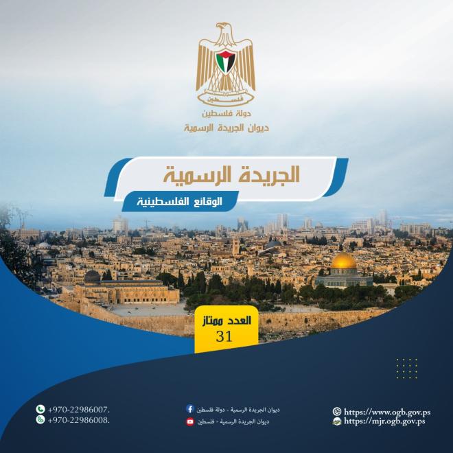 أصدر ديوان الجريدة الرسمية الفلسطينية، يوم الخميس 20 نوفمبر 2025، العدد ممتاز رقم (31) من الجريدة الرسمية الوقائع الفلسطينية، حيث احتوى العدد على القرار بقانون رقم (23) لسنة 2025م بشأن انتخاب مجالس الهيئات المحلية.