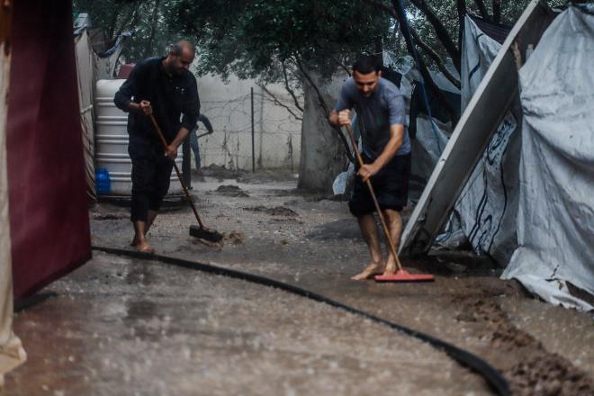 وكان منخفض جوي مصحوب بأمطار غزيرة قد تسبب، أمس، في غرق عشرات خيام النازحين في منطقة المواصي بمدينة خان يونس جنوبي قطاع غزة، ما أثار موجة جديدة من التحذيرات من كارثة إنسانية مع اشتداد البرد وتواصل هطول الأمطار.