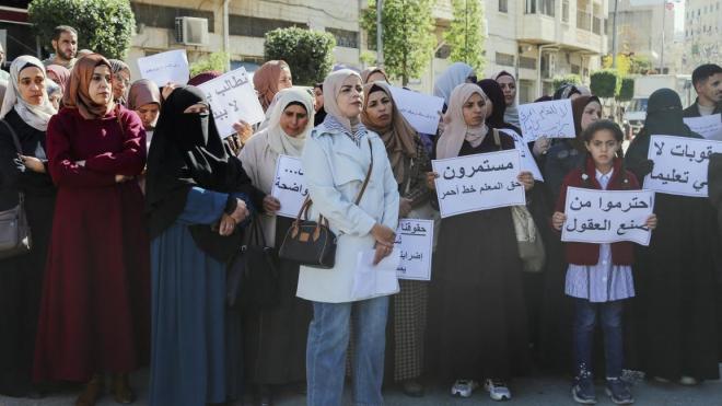 معلمون مضربون في الخليل، 26 نوفمبر 2025 (مصعب الشاعر/ فرانس برس)