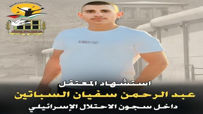 أبلغت الهيئة العامة للشؤون المدنية كلاً من هيئة شؤون الأسرى والمحررين ونادي الأسير الفلسطيني، باستشهاد المعتقل عبد الرحمن سفيان محمد السباتين (21 عاماً)، من بلدة حوسان/بيت لحم، في مستشفى "شعاري تسيدك" الإسرائيليّ، الليلة الماضية.