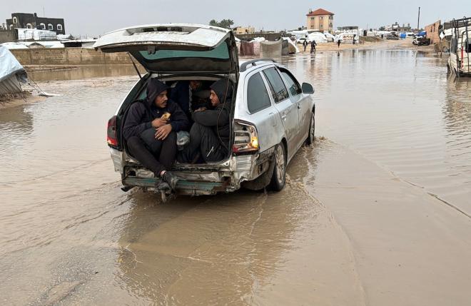 يُعاني الفلسطينيون من الفيضانات التي أعقبت هطول أمطار غزيرة على دير البلح