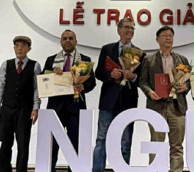 كرم رئيس رابطة كتاب فيتنام وجمعية شعراء قرية المعبد الشاعر نغوين كوانغ ثيو، الأمين العام للاتحاد العام للكتاب والأدباء الفلسطينيين الشاعر مراد السوداني، ضمن مسابقة قرية المعبد "الشعر والجذور "في نسخته الثالثة، في متحف هانوي بحضور لافت من السفراء والدبلوماسيين والشعراء والكتاب والإعلاميين.