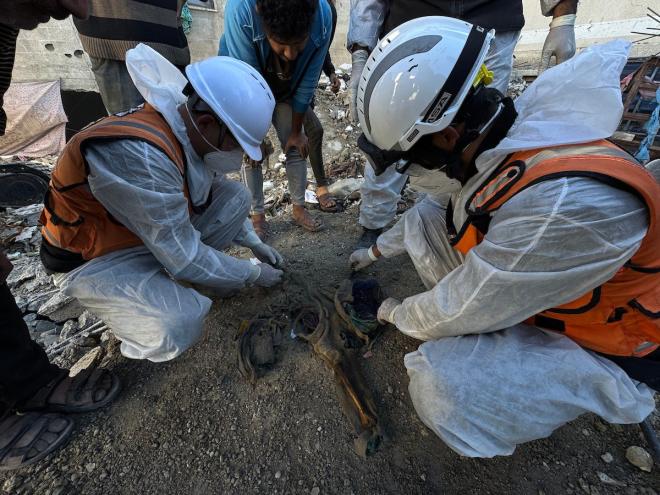 انتشلت فرق الدفاع المدني الفلسطيني في محافظة خان يونس جثث أربعة أطفال من منزل عائلة أبو هدروس في حي الأمل، بعد عام ونصف من استهداف المنزل خلال الحرب الإسرائيلية.