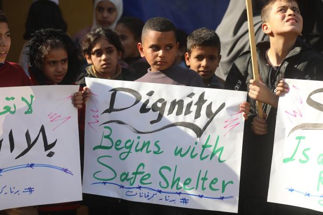 شارك أطفال فلسطينيون في احتجاج بمدينة غزة، يوم الخميس 25ديسمبر/كانون الأول 2025 مطالبين ببيئة تعليمية آمنة وكريمة بدلاً من الخيام التي يتلقون فيها دروسهم حالياً، وذلك بعد أن دمر الجيش الإسرائيلي معظم مدارس قطاع غزة على مدار عامين تقريباً من الحرب، ما حرم مئات الآلاف من الطلاب من مواصلة تعليمهم.