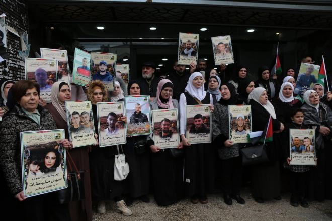 أقامت عائلات الأسرى الفلسطينيين في السجون الإسرائيلية وقفة احتجاجية في نابلس شمال الضفة الغربية، رافعين صور أبنائهم الأسرى ومطالبين بالإفراج عنهم ووقف الاعتداءات عليهم. كما طالبوا بعدم المساس برواتبهم.