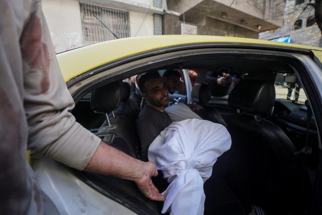 نُقل جثمان الطفلة الفلسطينية همسة حوسو، البالغة من العمر 12 عامًا، والتي قُتلت بنيران إسرائيلية في جباليا، إلى مستشفى الشفاء في مدينة غزة يوم الخميس 8 يناير/كانون الثاني 2026. (صورة: عمر أشتوي)